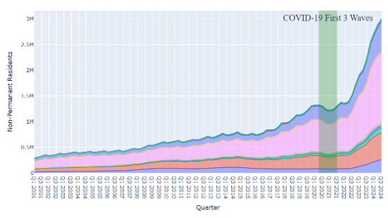NPR_ProvTerr = pd.read_csv("Non-Permanent Migration.csv") # Total Number of Non-Permanent Residents by Province and Territory